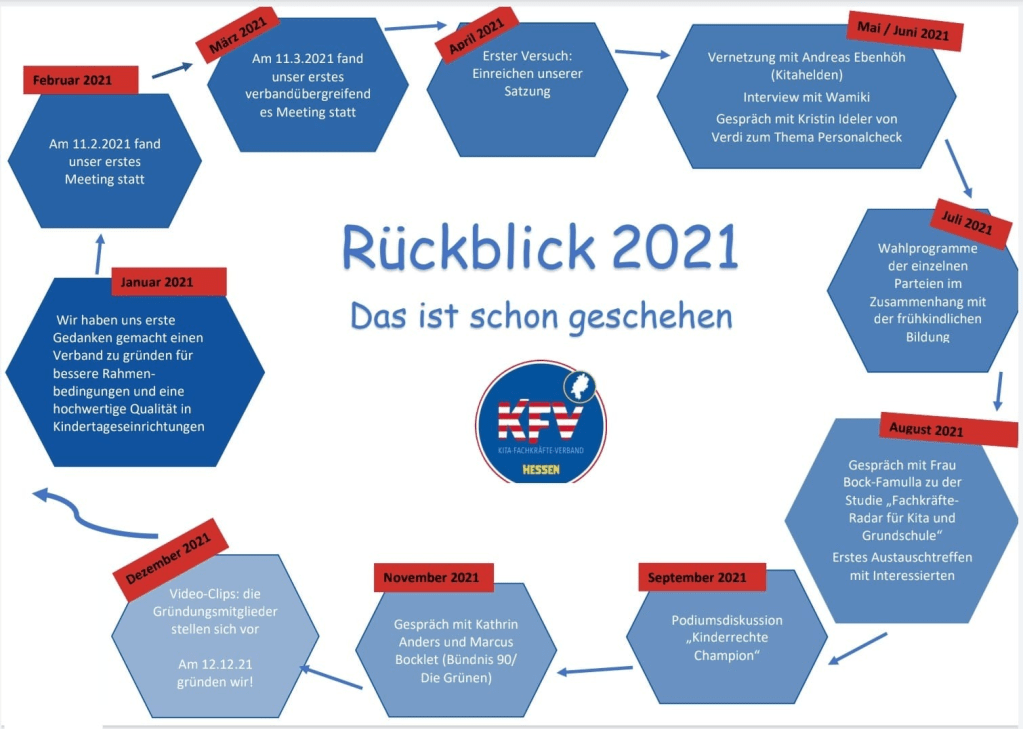 Ein erstes verbandsübergreifendes Meeting fand am 11.03.21 abends statt. Seither treffen sich die Landesverbände der Bundesländer einmal im Monat in einem Online-Meeting. Hier kommen Vertreter*innen der verschiedenen Kita-Verbände zusammen und tauschen sich über Themen (z.B. Verbandsgründung, Homepage, Vernetzung unter Verbänden) aus.